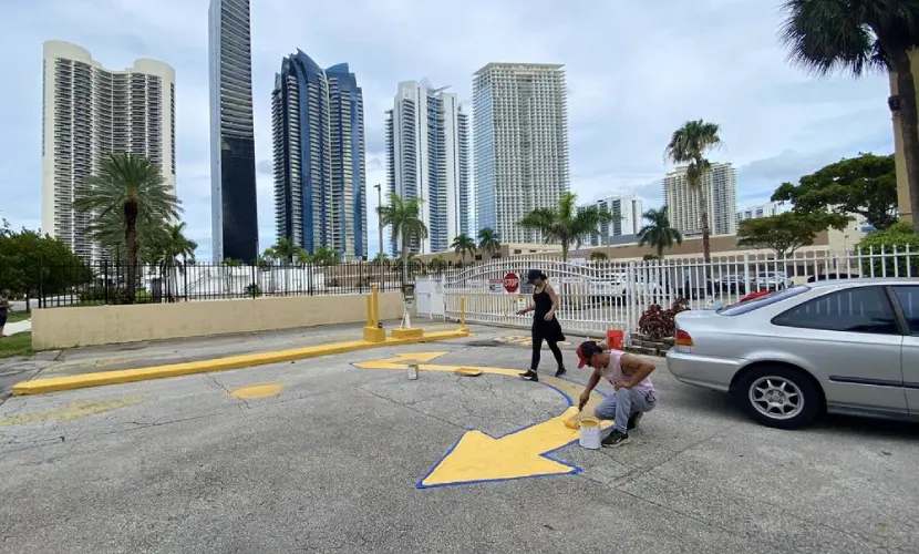 Our Asphalt and pavement signs in South Florida serve more than just decorative purposes–they also play a critical role in guiding vehicles and pedestrians safely through roadways, preventing accidents, complying with local laws, defining traffic flows, designating parking spots and improving overall property security. Proper signage can help define traffic flows, designate parking spaces and enhance overall property security.